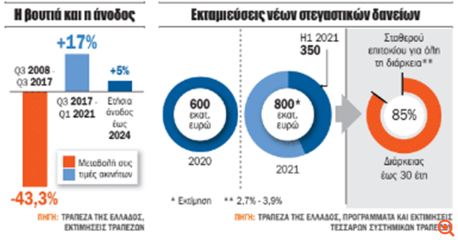 Τα lockdown που προηγήθηκαν ανέκοπταν κάθε φορά την εμφανιζόμενη ζήτηση, η οποία επανερχόταν ισχυρότερη με το πρώτο άνοιγμα της αγοράς. Το αγοραστικό ενδιαφέρον το γ’ τρίμηνο του 2020 οδήγησε σε ρεκόρ εκταμιεύσεων στεγαστικών δανείων τον περασμένο Δεκέμβριο, με τη ζήτηση να επανέρχεται ισχυρότερη στο β’ τρίμηνο του 2021.